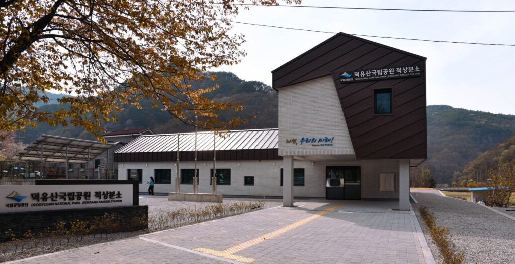 덕유산국립공원 적상분소 건축개요 대지위치: 전라북도 무주군 적상면 북창리 421-1번지대지면적: 2,241.00㎡건축면적: 289.26㎡연 면 적: 353.01㎡규모: 지상2층구조: 철근콘크리트조 Other Works 정관7초등학교 남해군 해양낚시공원 조성사업 송정경로당